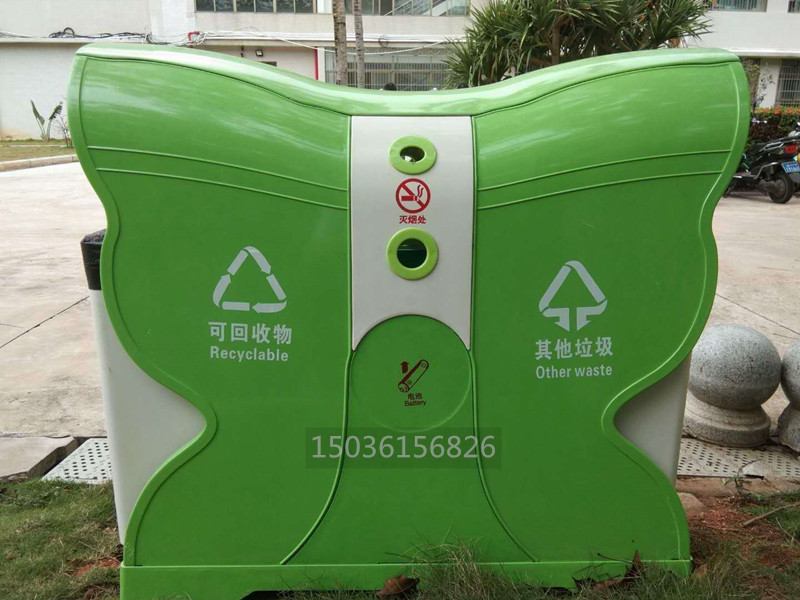 蝴蝶型分類(lèi)環(huán)保垃圾桶果皮箱采用SMC復(fù)合材料,3500噸壓機(jī)模壓成型,內(nèi)外光潔度一致。蝴蝶果皮箱采用鏡面模具生產(chǎn),表面光潔度高,防涂鴉防粘貼,防砸,耐燒,永不生銹,不易褪色,耐酸堿,易清洗,使用壽命長(zhǎng),操作簡(jiǎn)單,深受環(huán)衛(wèi)系統(tǒng)客戶青睞。玻璃鋼蝴蝶垃圾桶產(chǎn)品結(jié)構(gòu)特點(diǎn): 產(chǎn)品外型:造型獨(dú)特,美觀大方,創(chuàng)新的設(shè)...