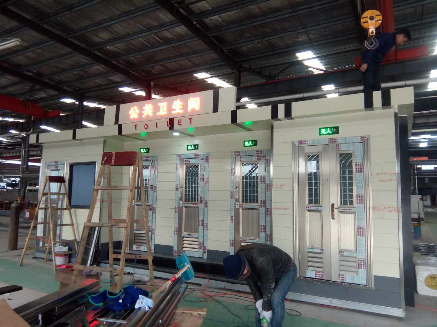 移動(dòng)廁所簡(jiǎn)介及制作方法:1、房體結(jié)構(gòu): 采用輕鋼龍骨結(jié)構(gòu),鋼材全部使用標(biāo)準(zhǔn)鍍鋅鋼材。根據(jù)房體的大小特選用國標(biāo)方管(50-100)焊接而成。鍍鋅管厚度為2.8mm,方管經(jīng)過除銹后進(jìn)行鍍鋅、防腐處理,這樣就會(huì)延長(zhǎng)廁所使用壽命.2、墻體: 墻板采用金屬雕花板,金屬雕花板是保溫、隔熱、環(huán)保、阻燃、防雨、防凍、隔音、抗震等...