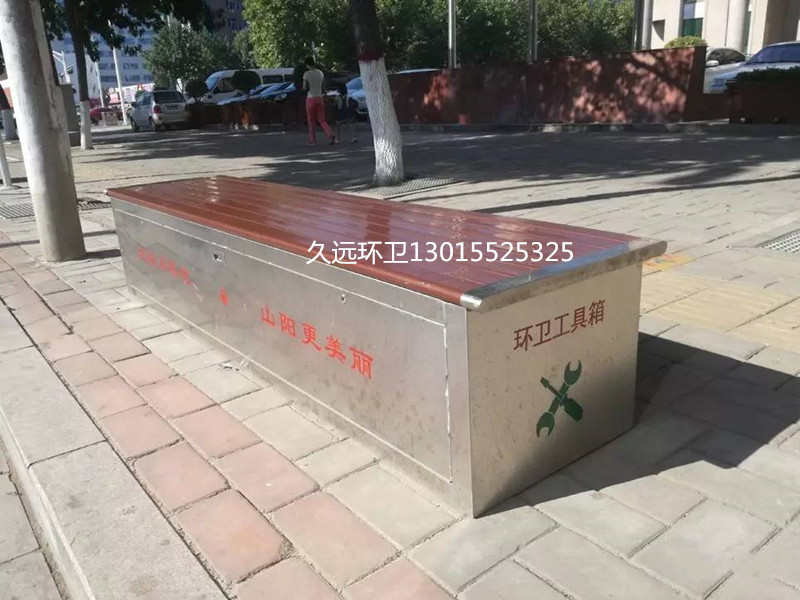 保潔員工具箱座椅是一種新型市政街道存放保潔員和環(huán)衛(wèi)工人工具、用具的多功能箱子,它既是工具箱,也是座椅。可以給保潔員提供一個(gè)日常休息和放置工具的儲物箱,也可以給路人提供一個(gè)臨時(shí)、短期休息的坐凳。對保潔員的日常保潔工具的存放和日常用品起到了規(guī)范管理作用,美化城市環(huán)境,提升城市文明。