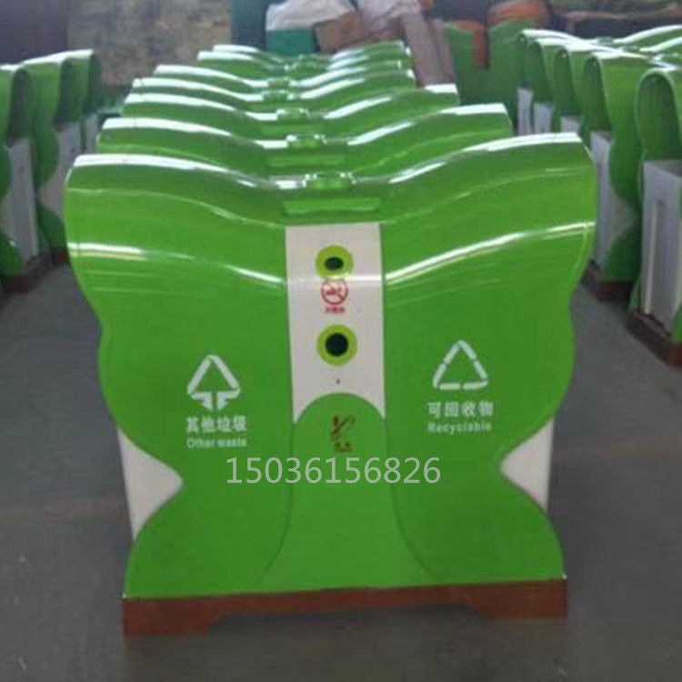 蝴蝶型分類(lèi)環(huán)保垃圾桶果皮箱采用SMC復(fù)合材料,3500噸壓機(jī)模壓成型,內(nèi)外光潔度一致。蝴蝶果皮箱采用鏡面模具生產(chǎn),表面光潔度高,防涂鴉防粘貼,防砸,耐燒,永不生銹,不易褪色,耐酸堿,易清洗,使用壽命長(zhǎng),操作簡(jiǎn)單,深受環(huán)衛(wèi)系統(tǒng)客戶青睞。玻璃鋼蝴蝶垃圾桶產(chǎn)品結(jié)構(gòu)特點(diǎn): 產(chǎn)品外型:造型獨(dú)特,美觀大方,創(chuàng)新的設(shè)...